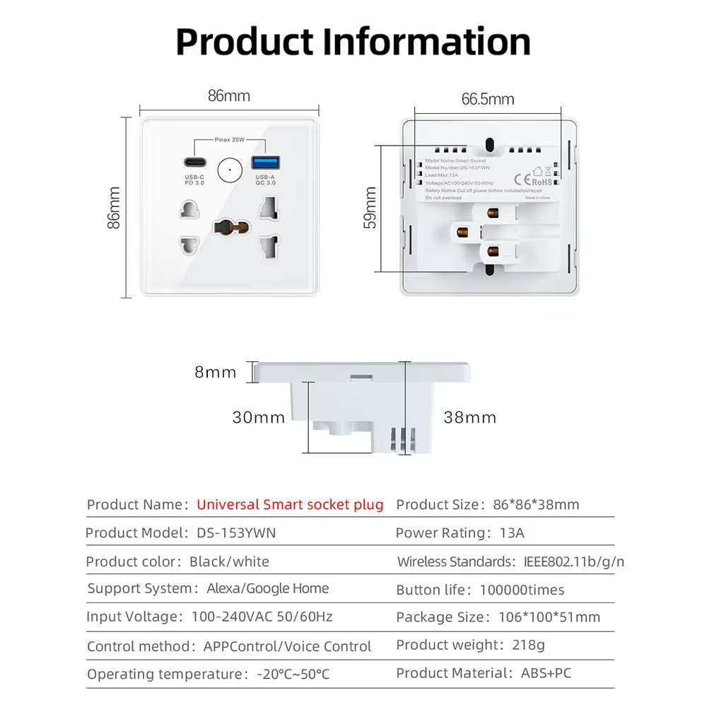 ✔ Seamless Smart Control – Works with Tuya ecosystem, WiFi-connected, and controllable via APP from anywhere.
